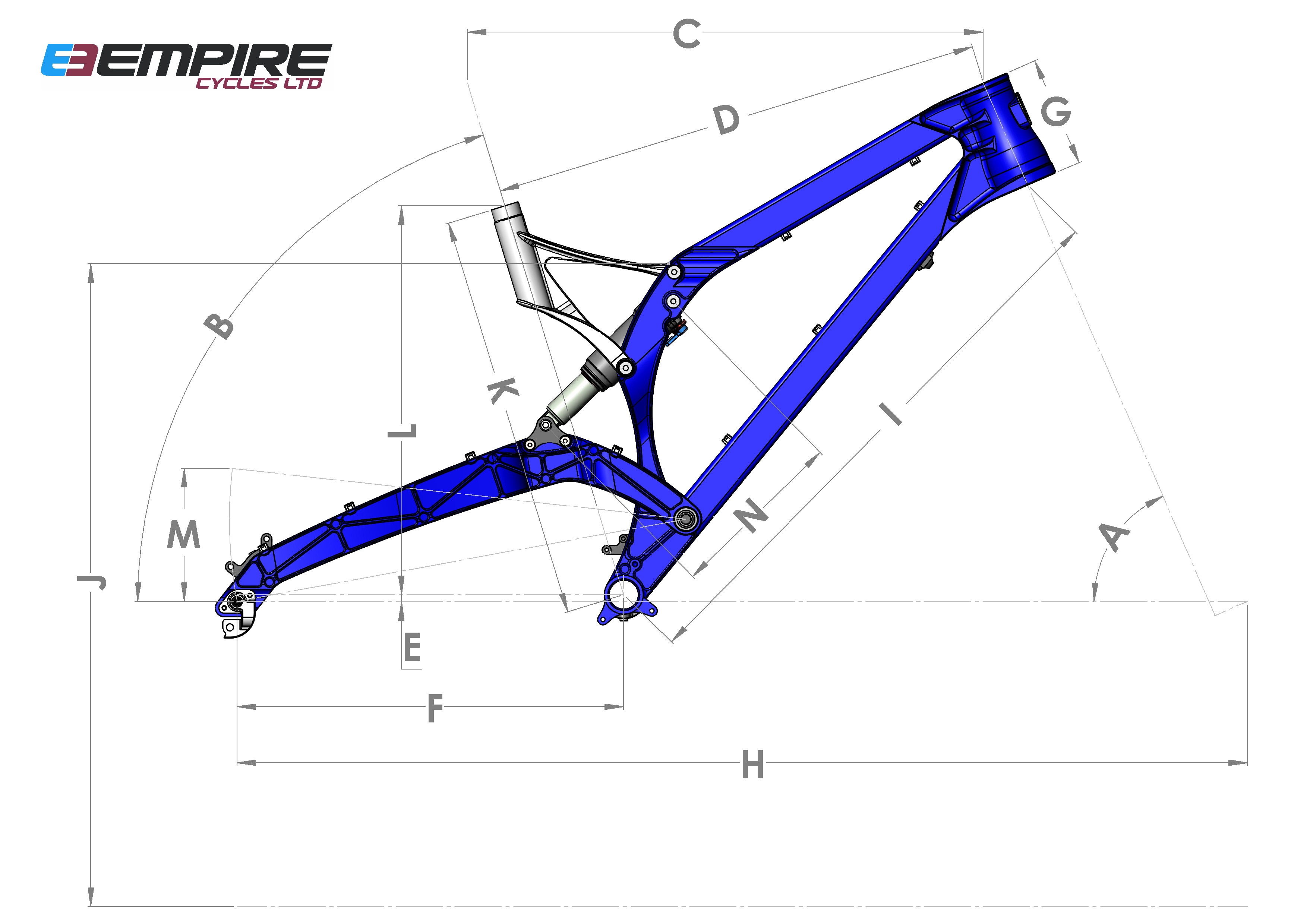 So, the MX-6. This is the next generation product using the DNA of the AP-1: high single pivot point, needle roller bearings, use of precision castings and CNC machined components, and aggressive geometry. The MX-6 is an all-day-warrior, going up hill and down dale with ease. The MX-6 is the younger brother of the AP-1: the modified geometry and component construction produces a bike that offers killer all-day, all-mountain performance. The MX-6 is tough enough to be thrashed downhill but can allow a rider to sprint uphill without excess weight. In this sense, it is an enduro product that can be raced all day. Of course, the MX-6 is designed, tested and manufactured in the UK.